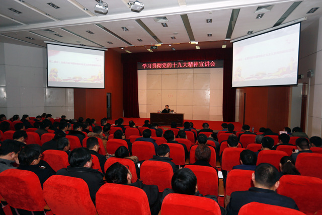 12月27日下午,党的十九大精神徐州市宣讲团成员、校党委书记刘波应邀为安全学院教职工党员作十九大精神宣讲报告。宣讲在信控学院报告厅进行,校党委副书记、纪委书记才庆祥,相关职能部门负责人以及矿业学院、信控学院、资源学院、体育学院的近300名党员参加报告会。