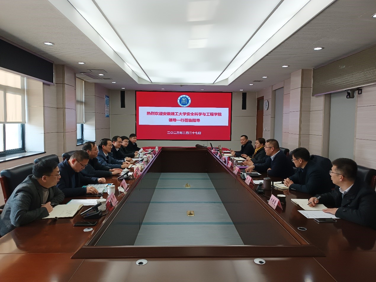 2月27日下午,安徽理工大学安全科学与工程学院党委书记金德、院长陆伟等一行8人来院调研。学院在A412会议室举行座谈会,在校全体院领导出席了座谈会,会议由院党委书记曲颂主持。