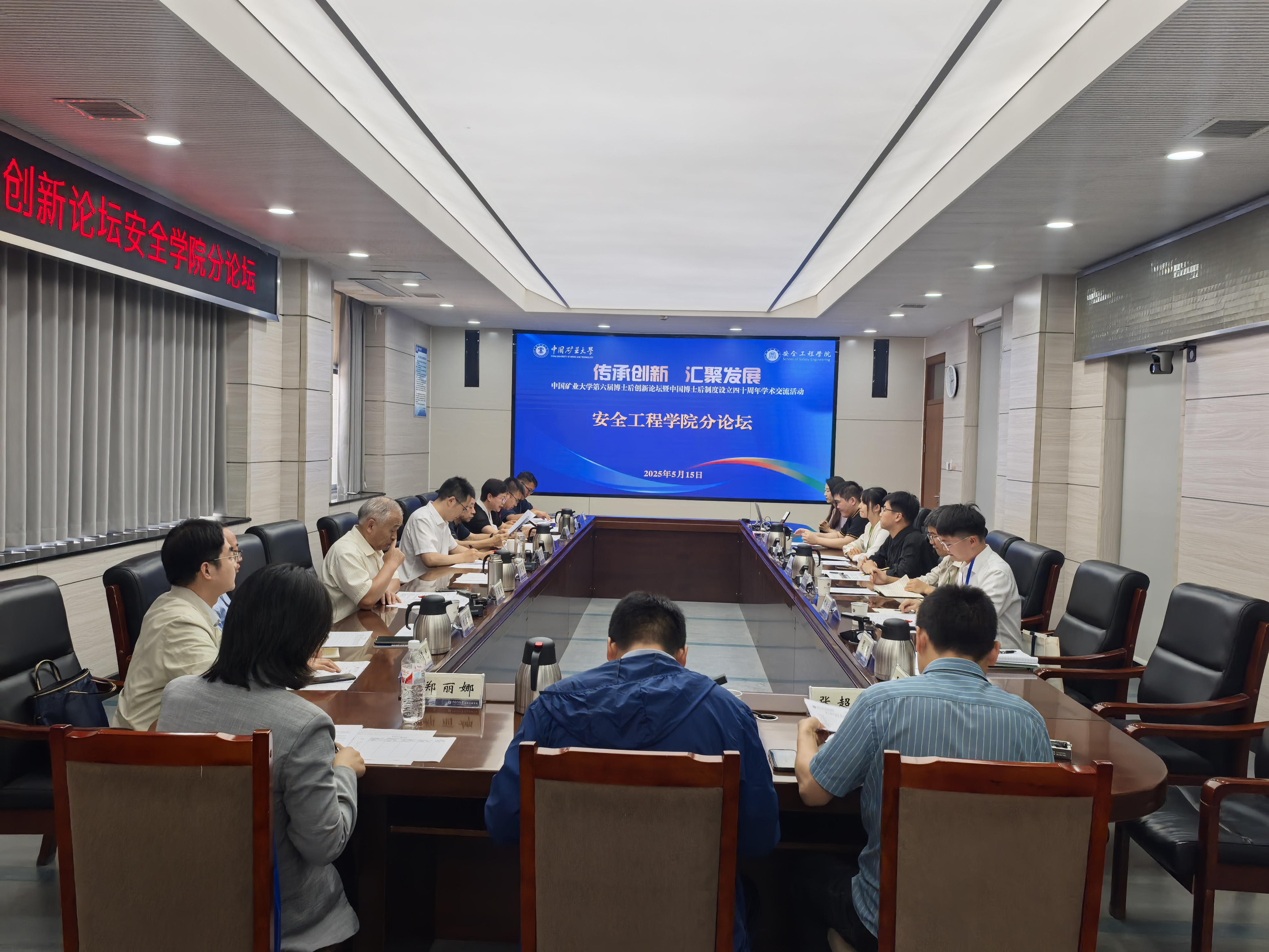 博士后创新论坛安全学院分论坛。院长翟成,副院长郭梅香,院教授委员会副主任朱国庆,教授委员会委员程远平、刘晓斐、刘应科,各研究所负责人以及来自清华大学、重庆大学、大连理工大学、华中科技大学、上海交通大学、绅士会所