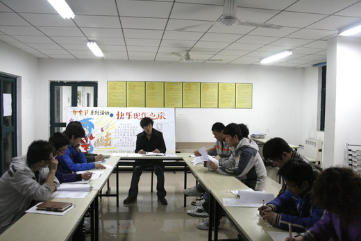 4月16日晚,绅士会所 08级团总支在梅三5楼活动室召开第一次委员会议,08级各团支部书记、组织委员、宣传委员参加会议。会议由08级团总支书记石恺主持。