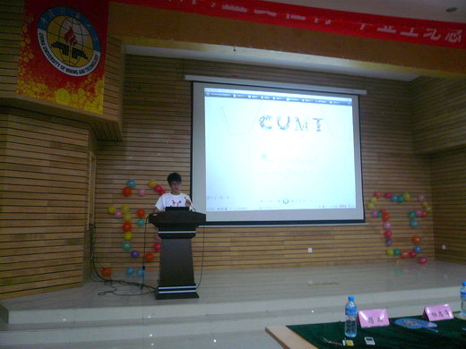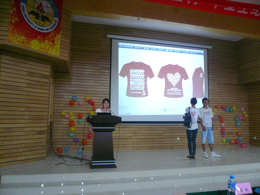 比赛开始前,每位选手抽签决定出场顺序,并从到场观众中选取20位大众评审参与作品评分。比赛中,每组选手有四分钟的时间按为在场观众介绍自己作品的设计理念以及背后的故事,选手们的纪念衫设计及PPT展示为大家展示出新一代矿大学子的风范与朝气。有的选手用极富感染力的演讲感染了所有的观众,有的选手用别致的设计吸引了大家的眼球,有的选手用新颖创新的PPT展示给大家带来了一场视听上的盛宴。入围决赛的20份作品无论在形式上还是内容上均让人眼前一亮,选手们用自己的创意为即将毕业的学子们祈祷、祝福。赛程过半时,来自外文学院的十佳歌手任文笔同学带来了一首热情四射的《热情的沙漠》,将比赛推向了高潮。