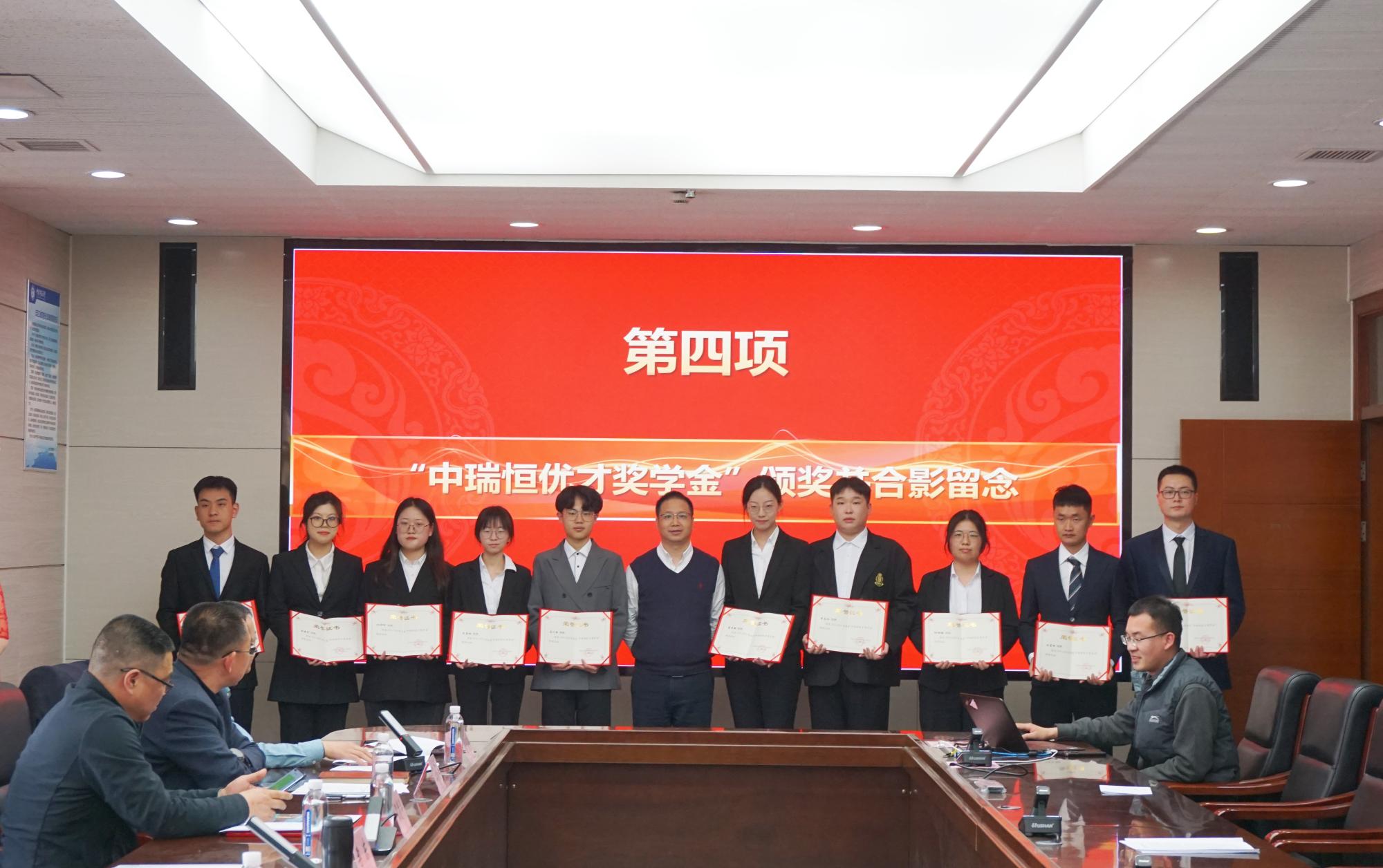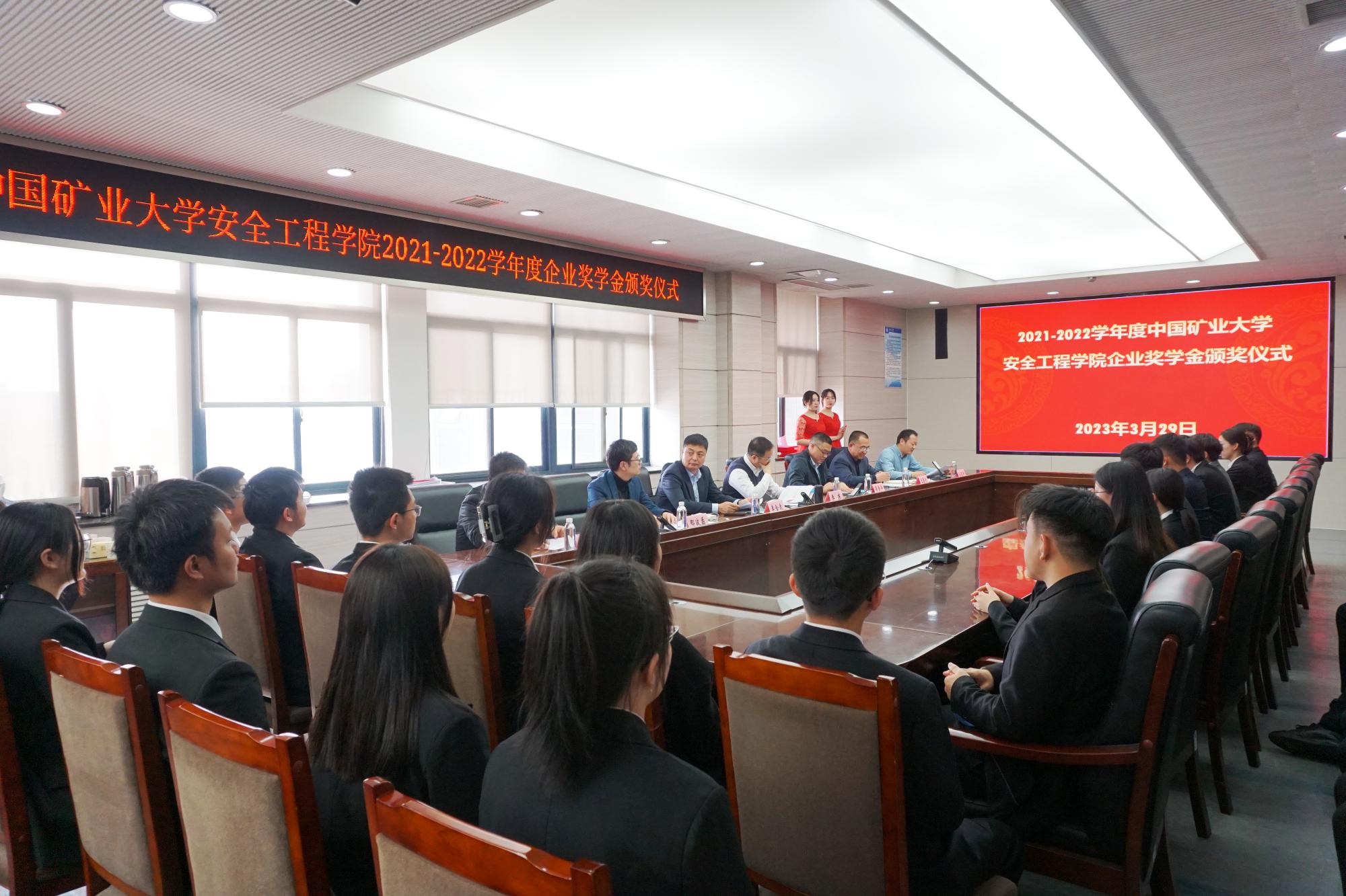 3月29日下午,学院在矿业科学中心A412举办2021-2022学年度“中瑞恒优才奖学金”“特领优才奖学金”“汇安奖学金”颁奖仪式。深圳市中瑞恒管理策划有限公司总经理李东、助理总经理李金虎,上海特领职业培训学校校长张爱平、人事经理郁波磊,深圳汇安消防设施工程有限公司董事长邱平安、人资行政经理蒋小建,院长王恩元,副院长刘晓斐以及受表彰的34名同学和部分低年级同学参加活动。活动由院党委副书记孙留涛主持。