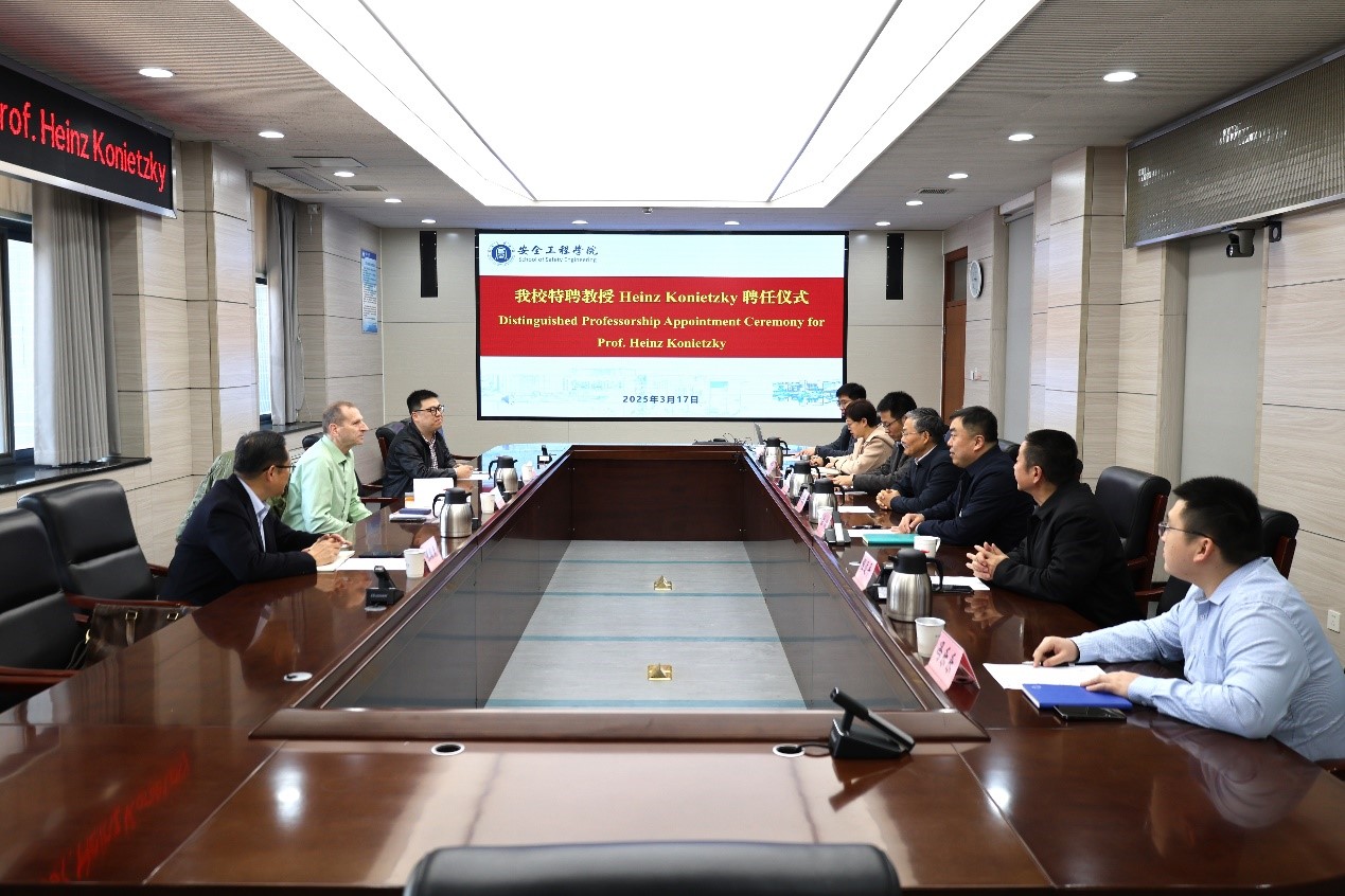 3月17日上午,学院在矿业科学中心A412会议室,举行Heinz Konietzky特聘教授聘任仪式。副校长卞正富,安全学院院党委书记宋冰、院长翟成、副院长郭梅香以及学院国际合作交流中心的教师代表等出席活动。聘任仪式由安全学院党委书记宋冰主持。