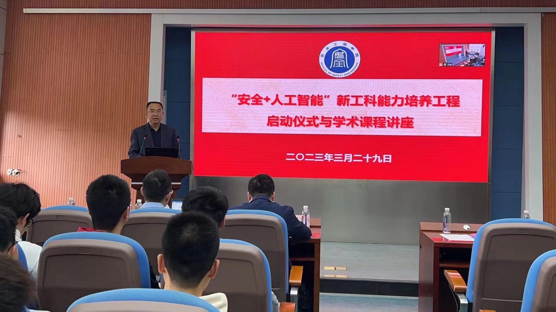 3月29日下午,学院在矿业科学中心A200报告厅以线上与线下相结合的形式,举行“安全+人工智能”新工科能力培养工程启动仪式与学术课程讲座。此次邀请到了杭州海康消防科技有限公司副总裁孙旷野和郭天文做报告,院长王恩元、副院长王亮、刘晓斐出席活动。开班仪式由王恩元院长主持。