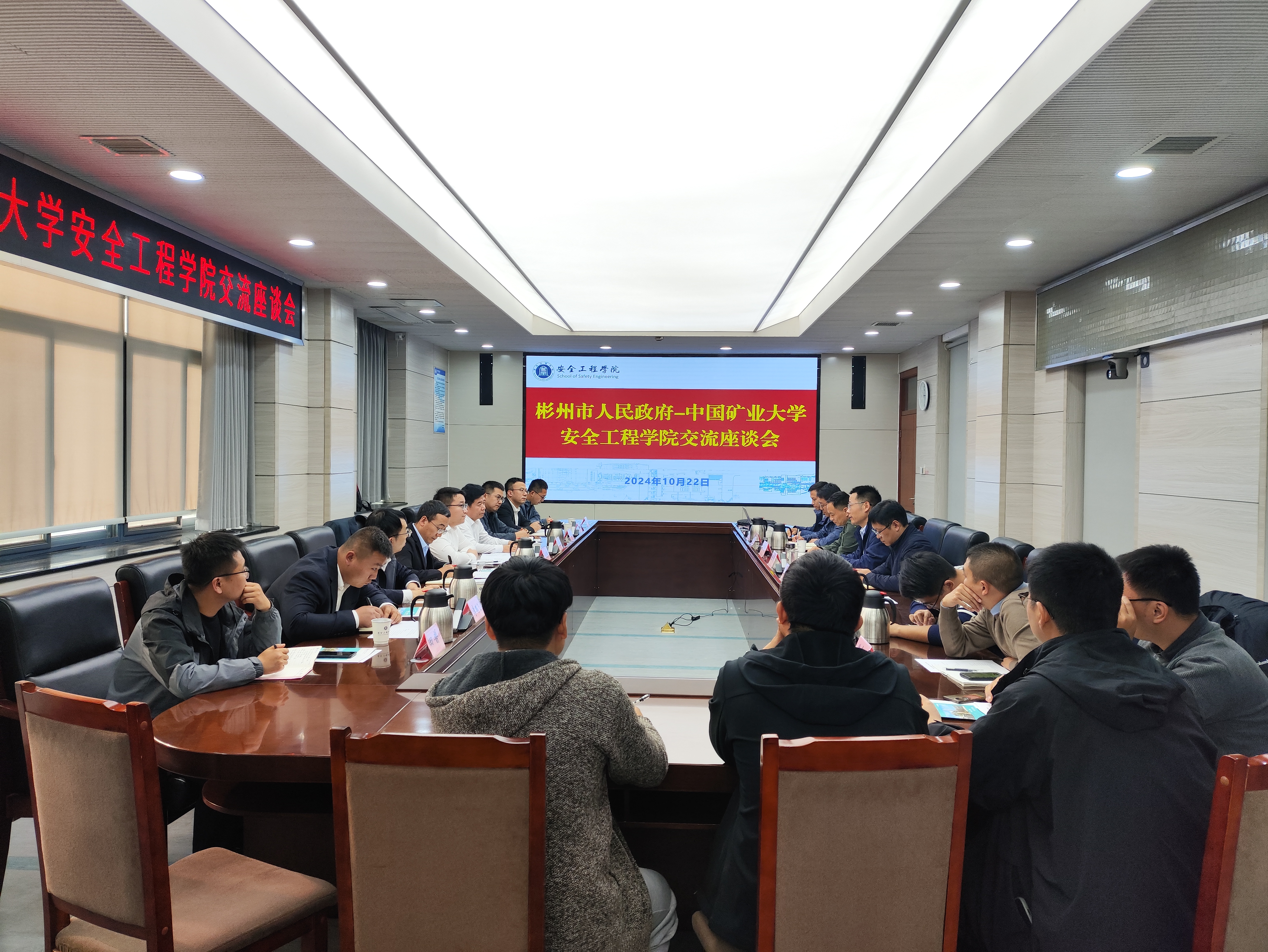 汤宗情副市长对学院的热情欢迎表示感谢,并介绍了彬州市发展现状及辖区煤矿生产情况,对辖区煤矿所面临的瓦斯灾害、冲击地压、水害等难题及技术需求进行了说明。