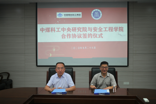 王恩元院长代表学院与中煤科工中央研究院签署框架合作协议。双方将在“平等互利、优势互补、资源共享、协同创新、共同发展”的原则基础上,在科技创新、人才培养、科研平台及创新团队建设等方面进行深入合作,来提升双方科研能力、成果应用化水平和技术成果转化、转移的综合能力;探索培养行业亟需人才的产教融合模式;打造具有融合优势的研究成果,提升我国应急科技水平的影响力,推动我国应急科技创新进步。