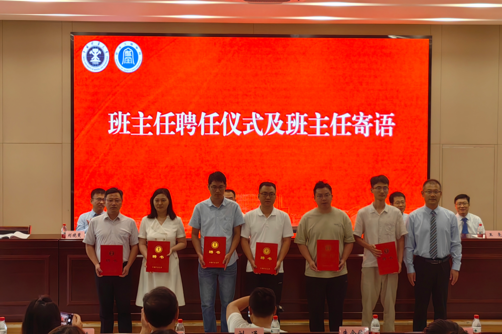 院党委书记曲颂为2023级新生行政班主任、学术班主任颁发聘书。行政副院长郭梅香宣读班主任聘任文件。新生班主任分别进行个人寄语,勉励新生心怀远大理想、努力学习、携手共进,共同谱写青春的华彩篇章。