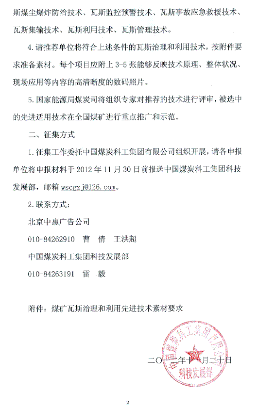 中煤科工集团“关于征集煤矿瓦斯治理和利用先进技术的通知”