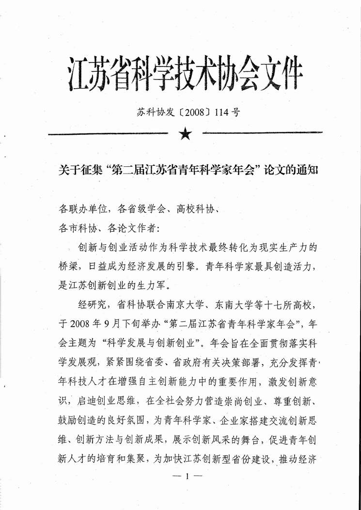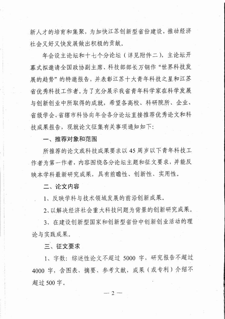 关于征集“第二届江苏省青年科学家年会”论文的通知