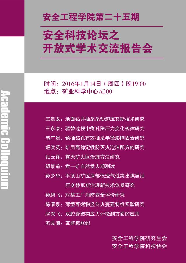 第二十五期安全科技论坛——开放式学术交流报告会