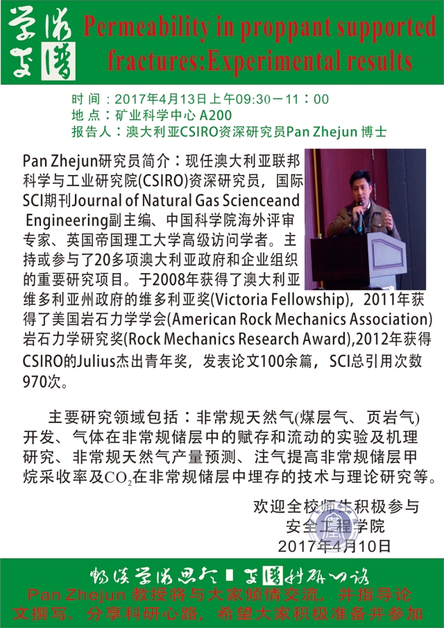 学术报告:Permeability in proppant supported fractures:Experimental results