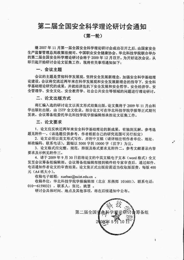 第二届全国安全科学理论研讨会通知
