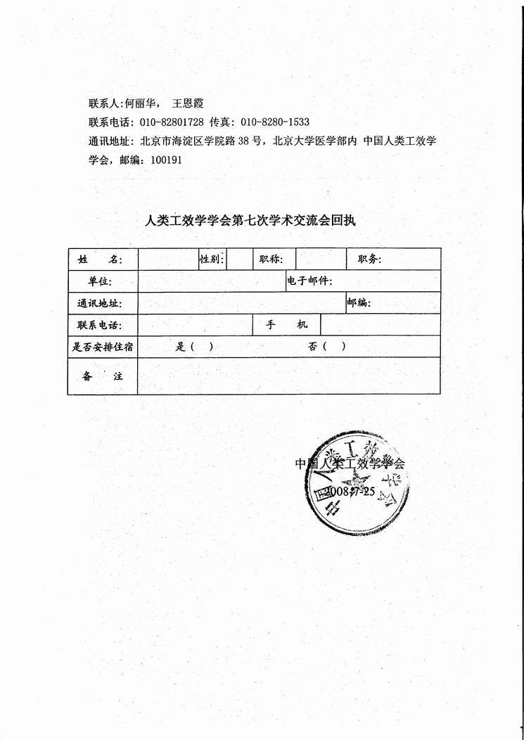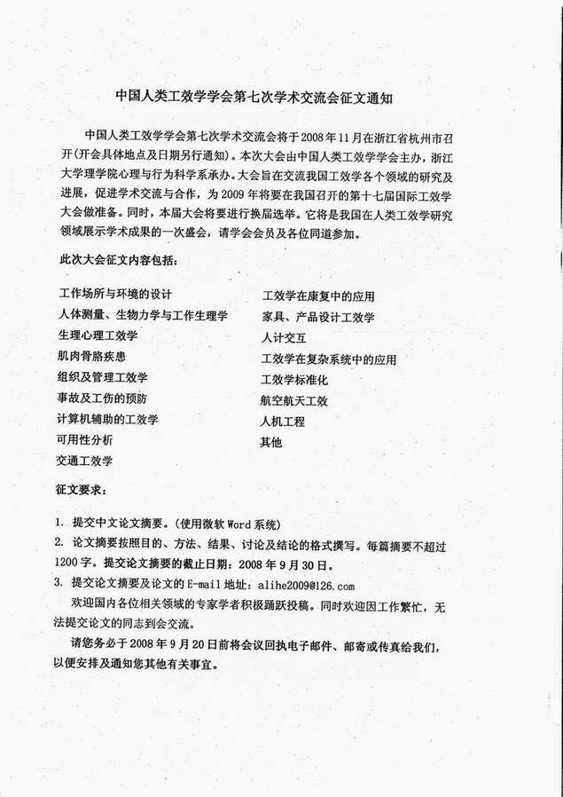 中国人类工效学学会第七次学术交流会论文征集