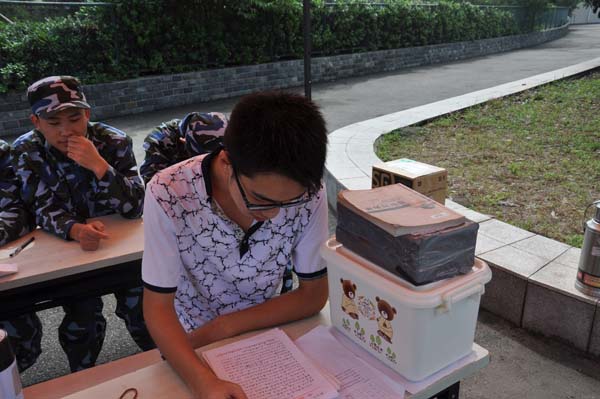 的新生迎来了军训的第三天。安全学院党员工作站组织专门的人进行值班,为努力着的新生提供自己的一份力量。