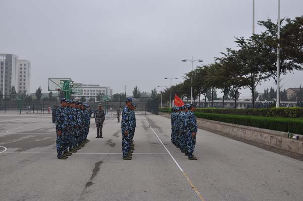 9月8日,安全学院新生依然在第三运动场上抛洒汗水,为了在几日后的军训队列会操中取得理想成绩,新生训练的异常认真。