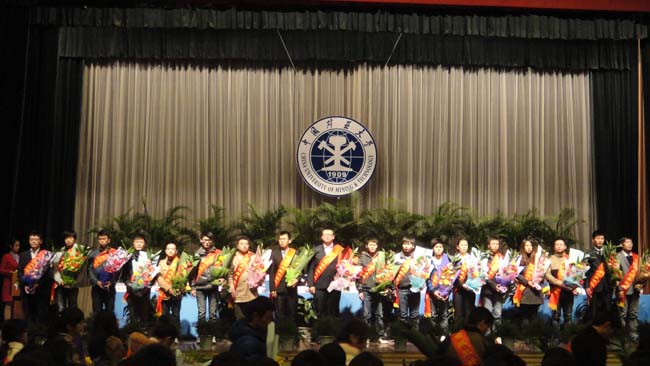 的矿井通风与防灭火研究所研究生课题组获得校级先进集体荣誉称号,安全学院百余名研究生获得了奖学金。颁奖仪式结束后,安全学院研究生王庆国作为学生代表登台发言,在发言中,他向大家介绍课题组的情况并与大家分享了课题组获奖的经验。