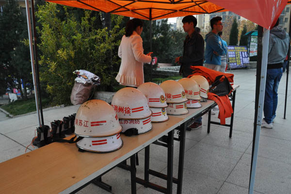 消除火灾隐患,共建和谐校园。在11月9日消防日这一天,安全学院青协全体成员在青协执行主席鲁守正的带领下来到二食堂广场,为过往的同学们普及消防安全的知识。