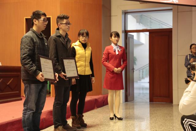 院级传媒中心表彰大会在信电学院报告厅举行,安全学院礼仪队参加了大会并对获奖个人及获奖学院进行颁奖。