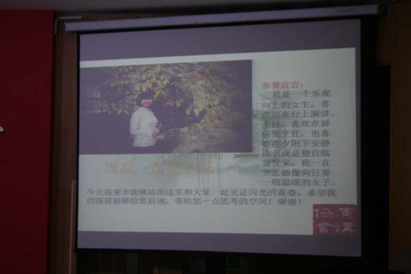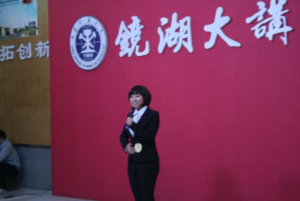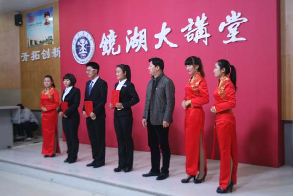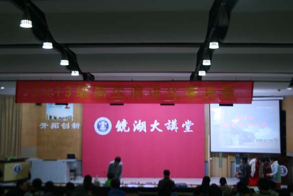 展大学生风采,树时代新航标。为了给广大同学提供展现自我,提升自我的舞台,2013级新生演讲比赛决赛于11月20日晚7点在镜湖大讲堂顺利拉开帷幕。本次决赛由高云昊、蒋唯文主持,评委有校学生工作处副处长闵涛、校党委宣传部副部长龚城、校团委副书记谢国发、徐海学院文学与艺术系主任戴惠教授,同时出席的嘉宾有校社团联合会各主席。安全学院安全13-4班周晶同学最终以88.55分荣获三等奖。