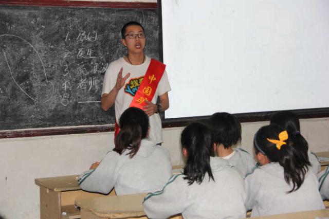 中午12:30,全班同学在东门集合完毕,坐上了前往桥上中学的公交车。下午1:00,志愿者队伍正式抵达桥上中学,开始了志愿之旅。本次活动共有四个环节。首先,志愿者们进行了爱心捐助图书活动,为桥上中学的孩子们改善读书环境。一摞摞书交到老师手上,再由老师放进爱心书柜里。志愿者手中此时托起的,不是简单的一摞书,而是孩子们眼里的智慧的火花。随后,进入到安全知识讲座环节。考虑到实用性,主讲人刘萍着重介绍了用电安全和食品安全,从生活中各种小事出发,分析利害关系。演讲过程中,她连连发问,孩子们踊跃发言,教室气氛热烈。接着,是班长蒋名军的激励话语发言,他号召孩子们要相信自己,即使学习环境再简陋,视线再狭隘,也要让自己的心长出翅膀。最后,到了提问环节,志愿者们与孩子们面对面交流,解答他们关于生活学习上的问题。在全体成员的合影留念中,本次活动画上了句号。