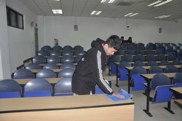 青年志愿者协会志愿者们积极参与“课桌清理文化节”活动。此次活动由机电学院主办,安全学院、资源学院、体育学院等十个学院协办。