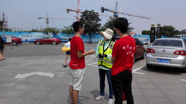 经过一个小时的准备,同学们早早就从学校出发,提着自己出资为环境工作者准备的矿泉水,来到了此次实践的目的地。来到云龙湖后志愿者发现虽然烈日炎炎,但是环卫工人仍然坚守在工作岗位上,疲惫时也最多在树荫下乘凉休息。志愿者找到正在工作的环卫工人向他们了解平时的工作内容,以及云龙湖日常环境状况,通过采访志愿者了解到由于云龙湖每天人流量很大所以周边的卫生环境不容乐观,因此导致环卫工人每天的工作量也比较大。活动最后当志愿者了解到云龙湖周围环境的相关情况后为正在辛苦工作的环卫工人送水,并且对于他们为保护环境所做出的努力表示感谢。并且呼吁更多的人关注环境问题,从点滴小事做起。