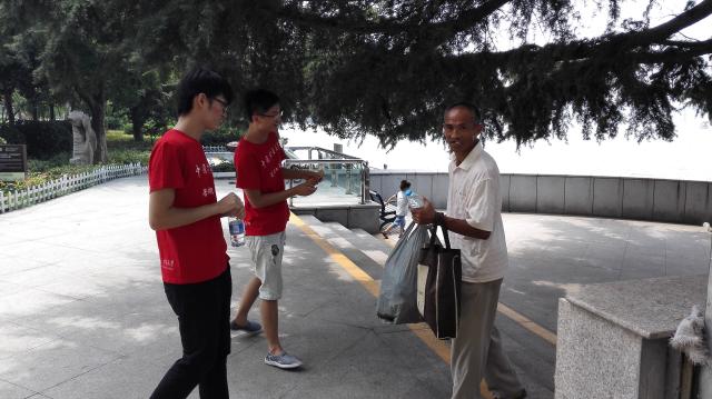 安全学院“寻找蓝天”社会实践团给云龙湖景区工作人员送去了矿泉水,在慰问景区环境工作者的同时,让爱护环境的观念深入人心。