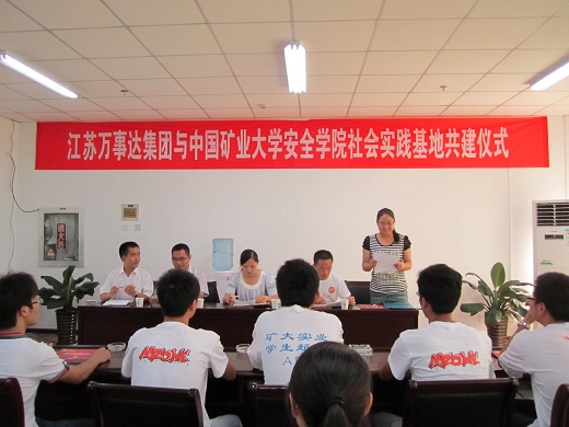 “SYB创新创业实践团”与徐州万事达公司大学生创新创业社会实践基地启动仪式在徐州万事达公司举行。“SYB创新创业实践团”指导教师李晓伟老师、辅导员李成刚老师、万事达人力资源部总监郭宏以及实践团成员参加了会议。