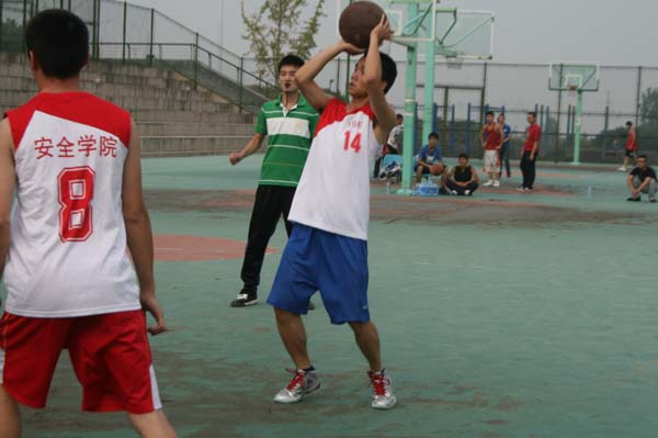 安全学院首先与艺术学院激烈开赛,这次比赛,双方本着友谊第一,比赛第二的原则进行。比赛一开始,场上双方便你追我赶,场面十分激烈。安全学院凭借良好的球技和球员默契的配合,使比分获得了领先的优势。但对方球队也不甘落后,展现了惊人的爆发力,奋起直追。场上局面异常紧张,即便如此,在第二场完毕后,安全学院还是以38比17的大比分领先,在后半场开始后,安全学院逐渐摸清了对方的套路,在领先的基础上频频断掉对方篮球,胜局已定,最终比分定格在49比34分,安全学院获得胜利。