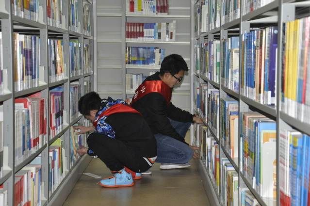 安全17-3班第三次参加图书馆共建的服务活动,活动前同学们认真听取安全学院领队的要求:志愿者应在活动中保持安静,不可以打扰图书馆中的读者,必须认真按照工作人员的要求整理图书,打扫卫生,做到精益求精。本次活动的内容主要是整理图书,将图书整齐摆放并正确分类。活动中安全17-3班同学在进行分区安排之后,每人拿了一个夹书板,随后到各自负责书架去整理书籍。将没有放到书架上的书放回书架,再用夹书板将书籍挤压整齐。除此之外,他们还给同学们的打扫了图书馆的每一个角落。