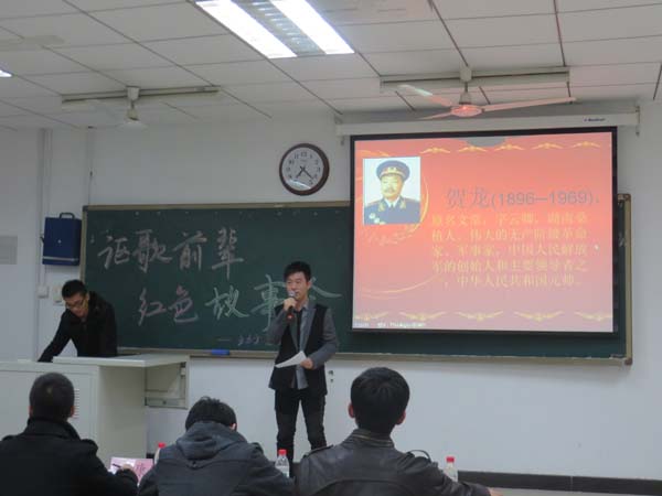 11月3日晚,由安全学院知行社举办的“讴歌前辈,红色故事会”在教四C305举办。担任比赛评委的有团委副书记肖义萌,学生会副主席李元元、杨康,青协主席孙勇及知行社社长彭扬,本次比赛由陶冰冰和王硕主持。