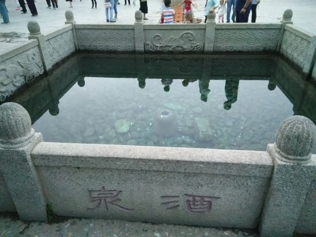 下午三点,团队成员来到西汉酒泉胜迹,一名酒泉队员向大家简单介绍了“酒泉”的来源。据悉,公园前121 年,骠骑将军霍去病西征匈奴,河西之战大获全胜,武帝亲赐御酒一坛犒劳将军,霍将军将酒倒入泉中,与将士取而共饮、共享功劳,因此“酒泉”的美名传承至今。团队成员从酒泉胜迹南门朱雀门进入来到汉武广场,广场中央纵贯一条卵石嵌装的水纹图。随后,成员们来到广场最南端的泉水口,泉池中间水底卵石历历可数,全夜间上升的水泡也清晰可见。据悉,古酒泉流淌至今已有 2100 多年的历史,它是汉王朝凿空西域、开疆扩土的历史见证,也是酒泉地方文化的核心和载体。