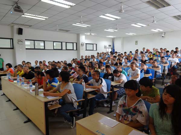 2013级新生在军训开始前学唱红歌,从而激发大家的爱国热情,使大家满怀激情地参加即将到来的军训。