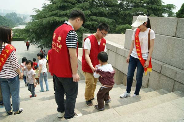 17日上午10点,志愿者们来到启聪聋儿学校,给孩子们带去了文具,玩具以及一些食物。随后带领孩子们到淮海战役纪念塔参观。
