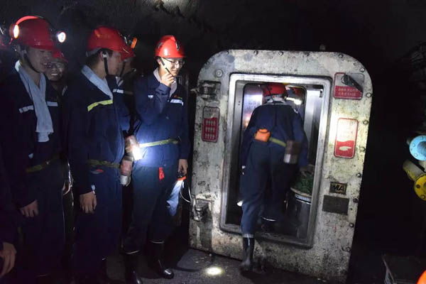 在为期两天的井下活动中,实践团先后参观井底车场、运输大巷、避难硐室、采掘工作面场所,全面展开调研活动。矿区坚持“预防为主,防治结合,综合治理”的原则,在不同场所、不同性质条件下,有针对性地采取不同措施,严格控制瓦斯灾害。相关负责人说,矿区通过保护层开采与预抽煤层瓦斯,从源头上消灭瓦斯危险,并建立了井下瓦斯抽采系统,在实际生产中排除瓦斯灾害发生的可能性。在参观避难硐室时,符海华指出,矿区高度重视井下的应急救援工作。硐室内配备充足的食物和洁净的饮用水,并能获取新鲜的氧气,在发生灾难时,硐室作为坚固的后盾,切实保障井下工作人员的生命安全。接下来,实践团陆续参观了采煤机、输送机等机械设备,再经过曲折蜿蜒的巷道、顺槽,参观了井下监测监控、压风自救、通信联络等系统,充分了解矿区应急救援情况。在剩余的时间里,实践团与井下职工展开广泛的交流,了解到井下工作的落实情况与具体技术困难。完成升井后,针对具体问题,实践团组织讨论,提出技术创新措施,并与矿区相关人员做了深入交流。