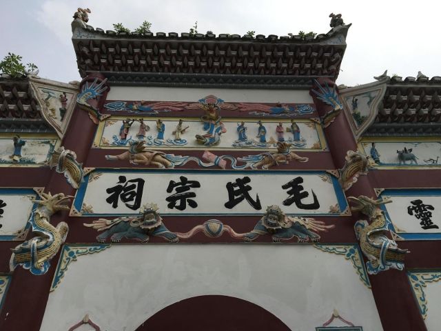 下午三点,部分团队成员前往毛氏宗祠参观。毛氏宗祠是一处建于清代中期的家族祠堂建筑,属于毛氏家族祭祀祖先和先贤的场所。韶山毛氏家族的总祠堂,始建于1758年,1763年建成。,建筑为砖木结构,青砖青瓦。宗祠大门天头有毛氏宗祠四字,大门外两边各立一石鼓。祠堂房屋分为三进。第一进为戏楼,楼阁中部为戏台,可容纳数十人登台演戏。第二进为中厅,右廊悬钟,左廊悬鼓,这里是全族办公、讲约、祭祀和摆酒设宴的地方。第三进是“敦本堂”享堂。堂中安放历代祖宗神主牌位,堂左为住宿处,堂右为钱谷、祭器等物的收藏处。“宗祠乃一族敬宗、收族、敦伦之所,应行修造壮丽,以光前德,以树家声”,这里所说的“敬宗”,就是礼敬祖宗;“收族”,就是收拢“宗族”;“敦伦”,就是促进教化。显然,毛氏宗祠是一族的标志性建筑。
