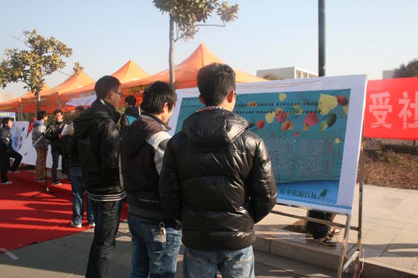 上午9点整巡礼节正式开始,各社团代表参加了在二食堂广场举办的首届社团巡礼节开幕式。同时在南湖校区的行健路图书馆至二食堂段道路两侧全校各社团都搭起了一个帐篷,并紧张的筹备着展示活动,虽然只是个小小的帐篷但每个社团都在此彰显着自己社团独特的魅力和风采。从9点半开始为社团自由展示时间,本次巡礼节的社团展示分为两大类,第一类:静态展示,第二类:互动展示。绅士会所