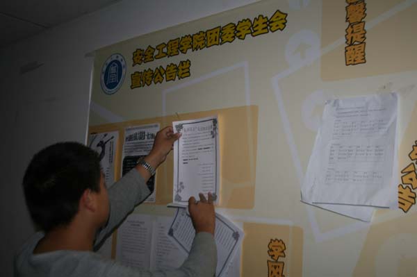 为了增强礼仪知识竞赛的宣传效果, 10月16日及17日晚,安全学院女生部又组织部员前往各宿舍楼宣传栏处张贴海报并向各宿舍发放宣传单让礼仪知识竞赛有更大的宣传效果,使更多的人积极主动参与到礼仪知识竞赛中来。