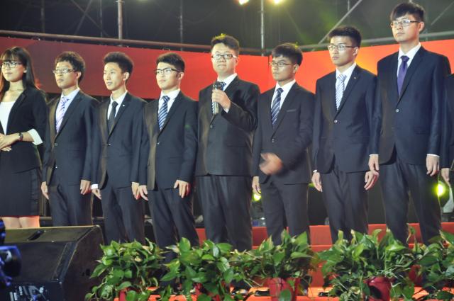 辅导员郑文奇、吴张蔚和何伟民带领15级全体新生参加了此次典礼。