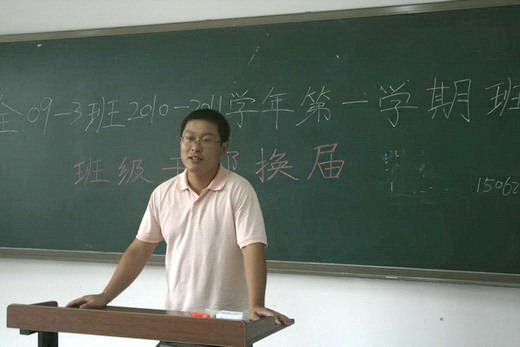 下午2点整,班会正式开始。首先是原班委对上一学期班级工作的回顾总结,各班委积极求实地评价了班级在过去的一年里所取得的成绩,同时也深入客观地剖析了班级内部存在的一些问题。王亮老师指出过去一年中班级存在的一些问题并给同学们提出了新的目标。接着,便是此次班会最重要的工作――班委换届,换届工作以班级成员自荐,他人投票,前班委成员商议的模式进行,在全班同学的积极响应配合下最终选举产生了新一届班委。最后,新班委一一上台,提出自己对今后班级建设的构想和班级工作的目标。会后,安全09-3班全体成员与班主任王亮老师合影留念。