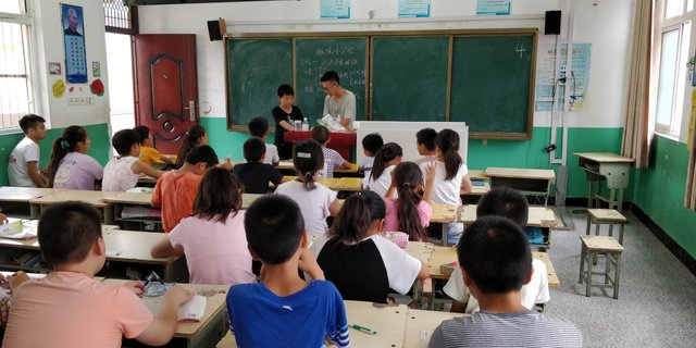 由于乡村小学条件艰苦,教学设施相对落后,支教团成员经过的长期的准备,终于备齐了实验仪器。上午八点半,李宇轩老师带着实验仪器来到教室,还没有上课学生们就将老师团团围住,好奇地盯着这些实验仪器。在同学们期待的眼光下,趣味实验课正式开始。李老师先向学生们介绍了磁铁的分类,教他们认清磁铁的南北极,并邀请学生上讲台一起探究磁铁的性质。经过了师生共同的探究,学生们明白了“同极相斥,异极相吸”的结论。随后,学生们在实验中发现了一个小问题,当他们用磁铁中部吸引铁片时很难将铁片吸起,用两端却很容易就能吸起铁片。由于这个问题涉及磁场和磁感线等较深入的内容,以大家当前的知识水平还无法想通,于是李老师借助实验仪器将抽象的理论具体化,让每位同学都能观察到了磁感线。随后,老师又拿出了司南和指南针,给学生们讲解这些东西能指明方向的原理,并向同学们介绍了中国古代的四大发明,同学们听完后不禁佩服中国古人的智慧。最后,老师让学生们根据刚刚学到的磁铁的性质,进行了“旋转的磁铁”、“磁铁推小车”、“磁弹簧”等小实验,学生们也成功将课上所学的内容应用到了具体的实验中。