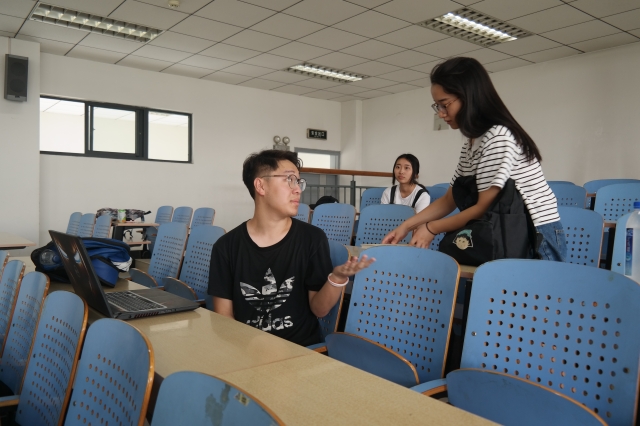 南湖校区进行拍摄,第一天的取景主要针对在图书馆和教学楼,拍摄过程由早上九点持续进行到了下午五点,拍摄过程中一直出现一些以前没有预料到的问题,例如路人路过影响拍摄或者演员背不住词等等突发情况,但是团队成员们也在问题中更加了解到拍摄的必要过程,拍摄进程也愈发顺利。实践团的成员们还在拍摄过程中为自己的角色设定进行了深入的剖析,对剧情进行了一定的加入和修饰,旨在给大家带来更加贴近于大学生活的电影,从而达到更好的传播效果和教育意义。下午五点,最后一幕的拍摄结束为第一天的实践划上了句号,成功完成了第一天的拍摄任务。