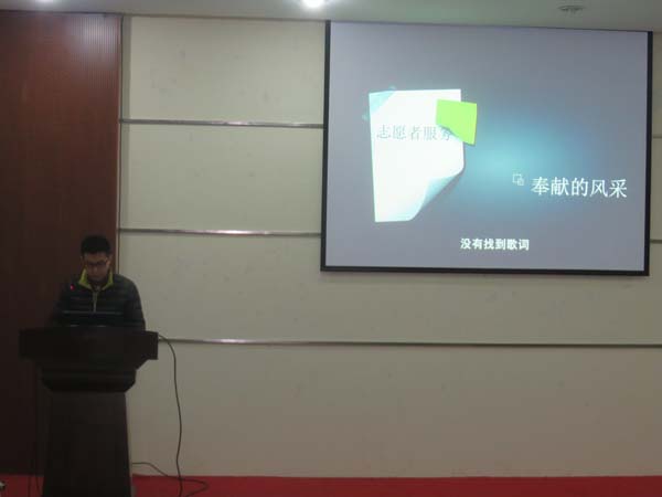 晚七点,竞赛正式开始。首先,第一轮是ppt展示。经过抽签决定,安全青协小组第六个展示。尽管是第六个上场,在他们之前上场的小组展示也都很精彩,安全青协小组不惧压力,以沉着冷静的态度向在场同学及老师展示他们的ppt。他们的主题是“志愿者的风采”,他们采撷08北京奥运会以及10上海世博会志愿者的相关资料,让观众领略到当代志愿者的风采以及他们乐于奉献的可贵精神。随后,在所有小组展示完ppt后,进入比赛第二轮――志愿者知识抢答。因为在之前做了充分的准备,安全学院参赛选手胸有成竹,沉着应对,其他小组的表现也异彩纷呈,多轮的比拼将现场的 气氛推至高潮。晚九点,竞赛结束,结果将在明后天公布。