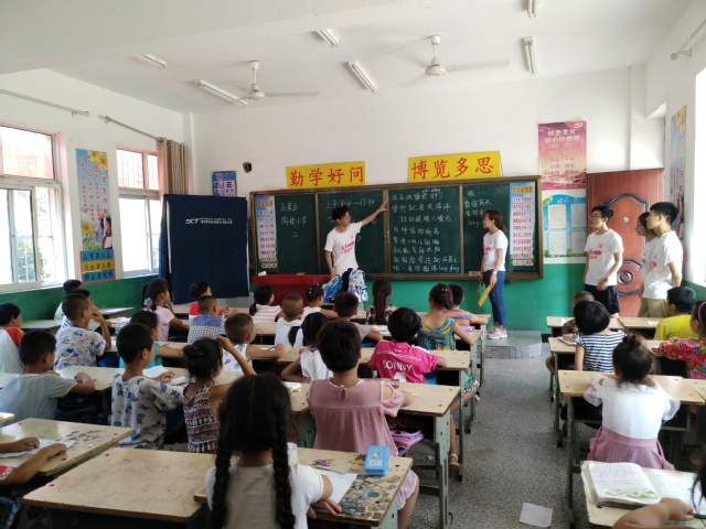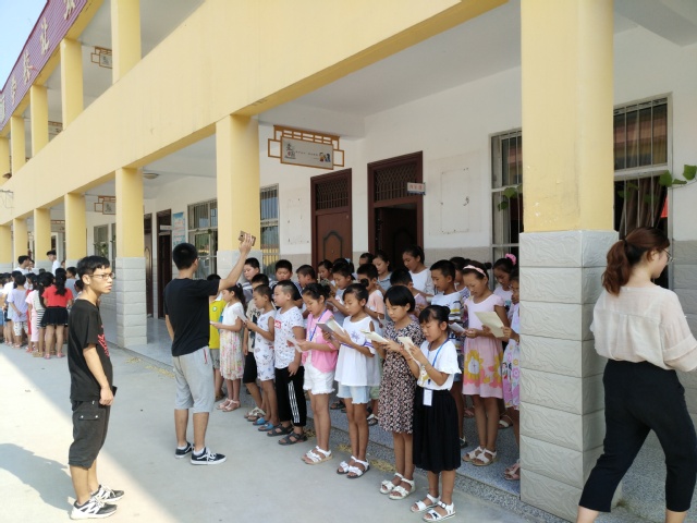 安全学院“仲夏希望”支教支教团在安徽萧县陶楼小学筹备年级合唱比赛活动,并组织学生们进行排练。