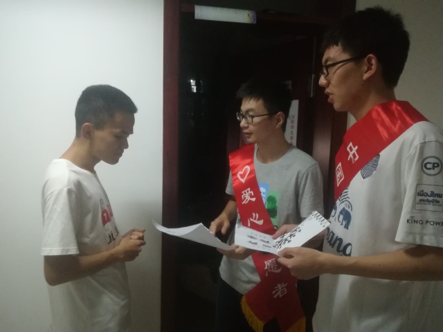 晚上9点整,志愿者们在梅三大厅集合完毕,经过简短的分工后,扫楼活动正式开始。志愿者们向大四同学们详细介绍了此次活动的目的和参与方式,大四同学们纷纷表现出浓厚的兴趣,积极配合志愿者,互相留下联系方式,约定好在离校之际捐出寝室备品、被褥、书本等等,把旧物的价值延续下去,提高资源的利用率。经过一段时间的宣传后,扫楼活动圆满结束。
