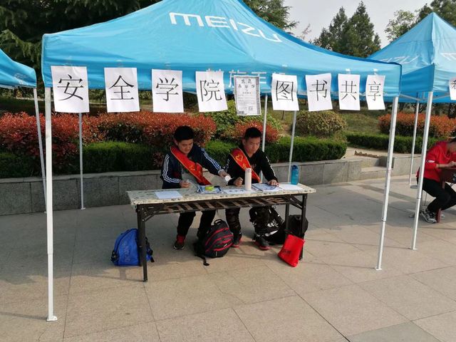 安全学院青协在早上八点就在青春广场集合做准备工作,同学们搭起帐篷和展板,展板上有安全青协自开设以来的优秀成绩,因为以志愿奉献为宗旨,走稳步前进的发展道路,安全青协所开展的种种志愿活动深受校园学生好评。同时志愿者向过路的学生发放宣传单,并对活动的举办意义做了讲解,使同学们了解安全学院青协的每一步发展,号召同学们积极参加志愿活动,深入了解志愿活动的意义。此外青协提前在线上发布了征求闲置书籍的活动,志愿者对书名和同学的信息进行了登记,有同学说道:“这样的志愿活动很有意义,帮助他人的同时也帮助了我自己,以后一定会积极参加的。”