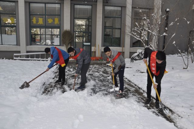 近日,徐州市内突降大雪,积雪覆盖道路,给同学们的出行造成阻碍。为了保障同学们的出行安全,1月5日,安全学院义务在梅苑3号楼后院开展道路清扫活动。