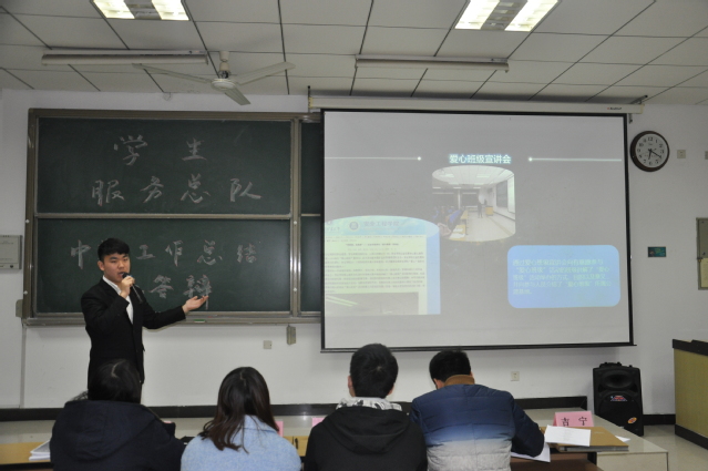 为帮助各服务分队回顾、分析过去的工作,更好的规划未来的发展,1月8日,由学生服务总队主办的服务总队中期答辩会在博二B201教室举行,学生服务总队主席团担任评委。安全学院服务分队积极参与本次中期答辩会。