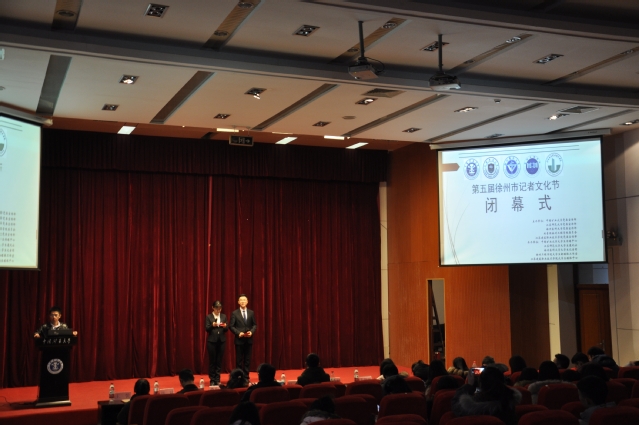 、江苏师范大学、徐州医科大学、徐州工程学院、江苏建筑职业技术学院五所高校的校园媒体中心的主席齐聚矿大,一同参加本次记者文化节的闭幕式,同时担任记者风采大赛决赛的评委。安全学院新闻宣传中心的大学生记者代表们积极参加了此次闭幕式。
