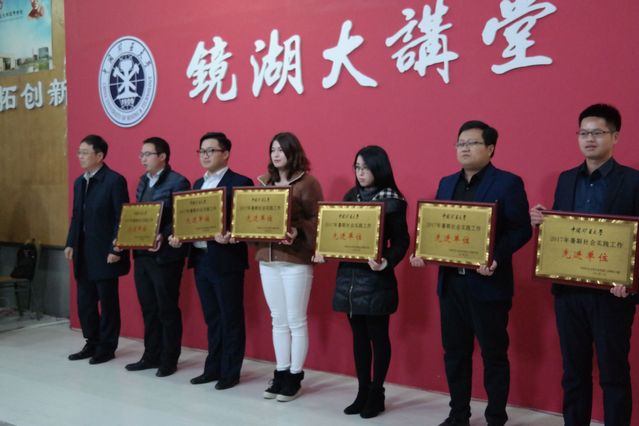 2017年暑期社会实践表彰大会在镜湖大讲堂召开。校党委副书记曹德欣、校团委书记陈文、校党委宣传部副部长王传啓、教务部副部长管红杰、学生工作处副处长胡卫新出席本次会议。安全学院团委书记孙婷带领获奖学生代表参加本次会议。